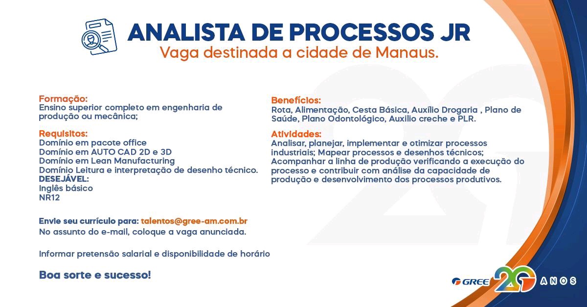 ATENÇÃO: Nunca pague nenhum valor para participar de um processo seletivo. Não compre cursos, apostilas ou serviços que prometam participação em seleção ou contratação para… Read More »Estamos recebendo currículo para Encarregado de oficina mecânica.