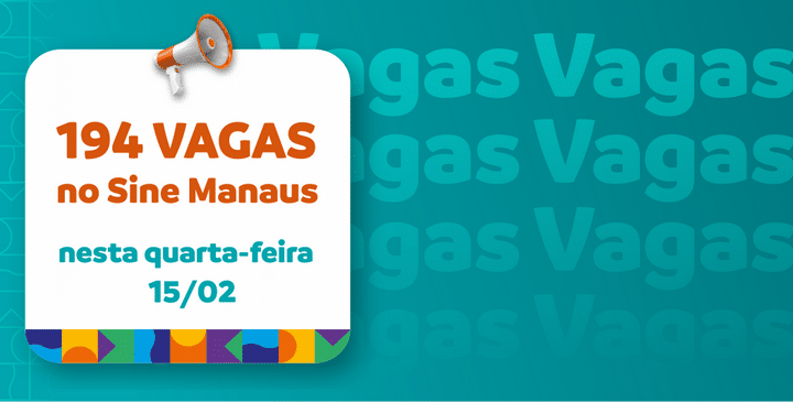 Sine Manaus oferta 194 vagas de emprego em várias áreas de atuação, nesta quarta-feira 15/2….