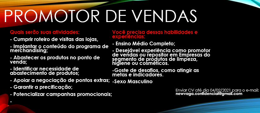 Interessados enviar currículo com pretensão salarial para o e-mail: