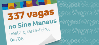 A Prefeitura de Manaus, por meio do Sine Manaus, oferta 337 vagas de emprego em várias áreas de atuação, nesta quarta-feira, 4/8, de 8h às 17h.