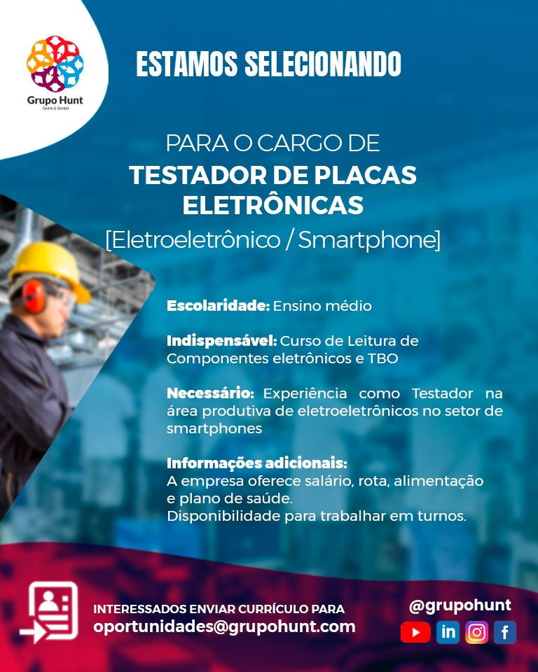 Enviar currículo até o dia 07 de maio COM O TÍTULO DA VAGA para: