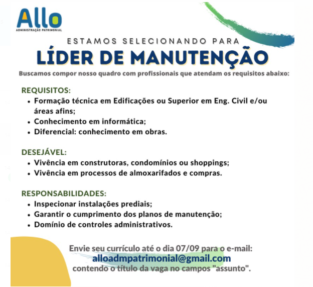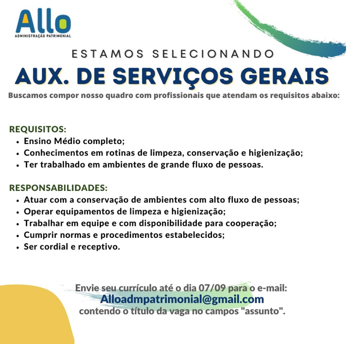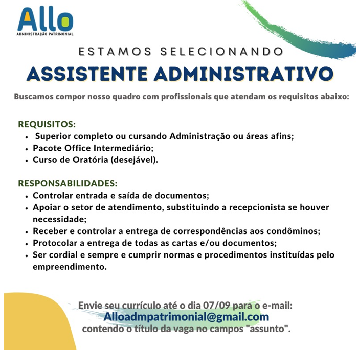ALLO ADMINISTRAÇÃO PATRIMONIAL ESTÁ RECRUTANDO PROFISSIONAIS… Anúncios Related Posts Oportunidades de Carreira na Daimler AG (Mercedes-Benz Group): Vagas, Benefícios e Desenvolvimento Profissional Como se Candidatar às Vagas de Emprego na Daimler AG (Mercedes-Benz Group) Por Que Trabalhar na Apple: Oportunidades de Carreira, Benefícios e Cultura de Inovação anteriorEstamos fazendo seleção para diversas áreas:próximoEmpresa multinacional está recrutando Jovem aprendiz .