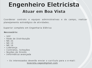 Aos interessados e que atendam ao perfil, enviar curriculo para o e-mail: