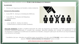 Os interessados encaminhar currículos com o título da vaga para o e-mail: