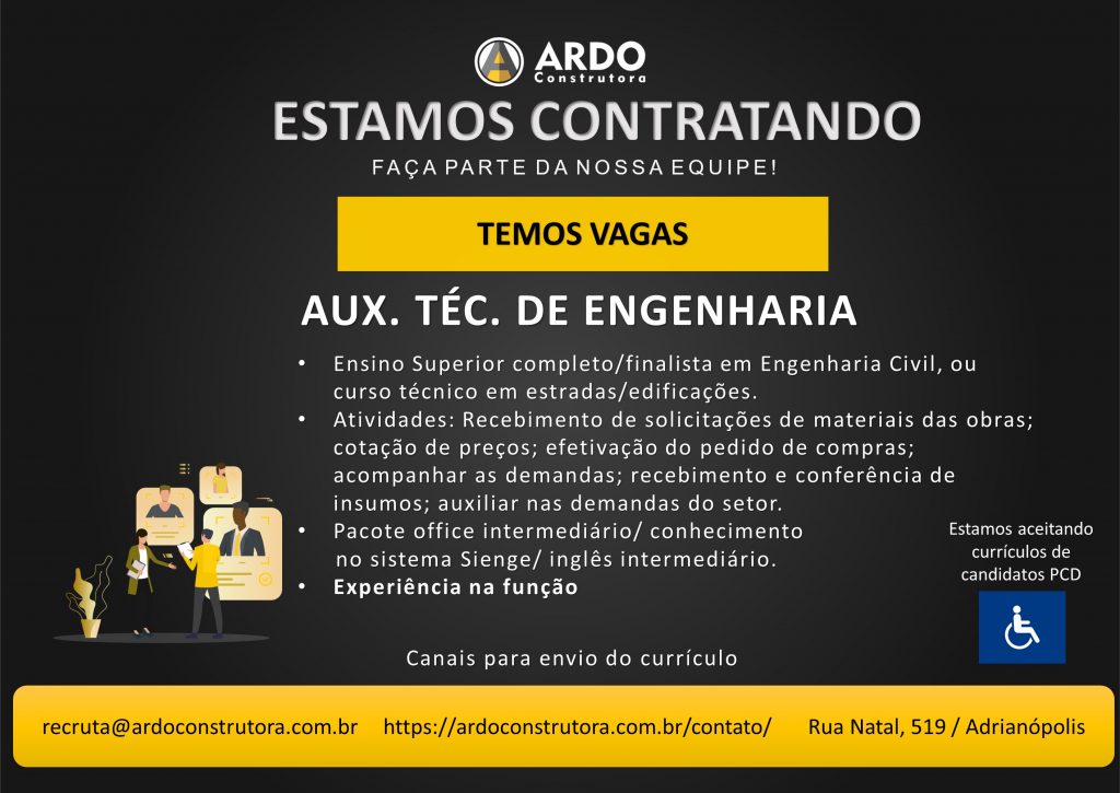 ARDO CONSTRUTORA ESTÁ RECRUTANDO NOVOS PROFISSIONAIS PARA COMPOR SEU QUADRO DE FUNCIONÁRIOS. – Emprego Day – AM