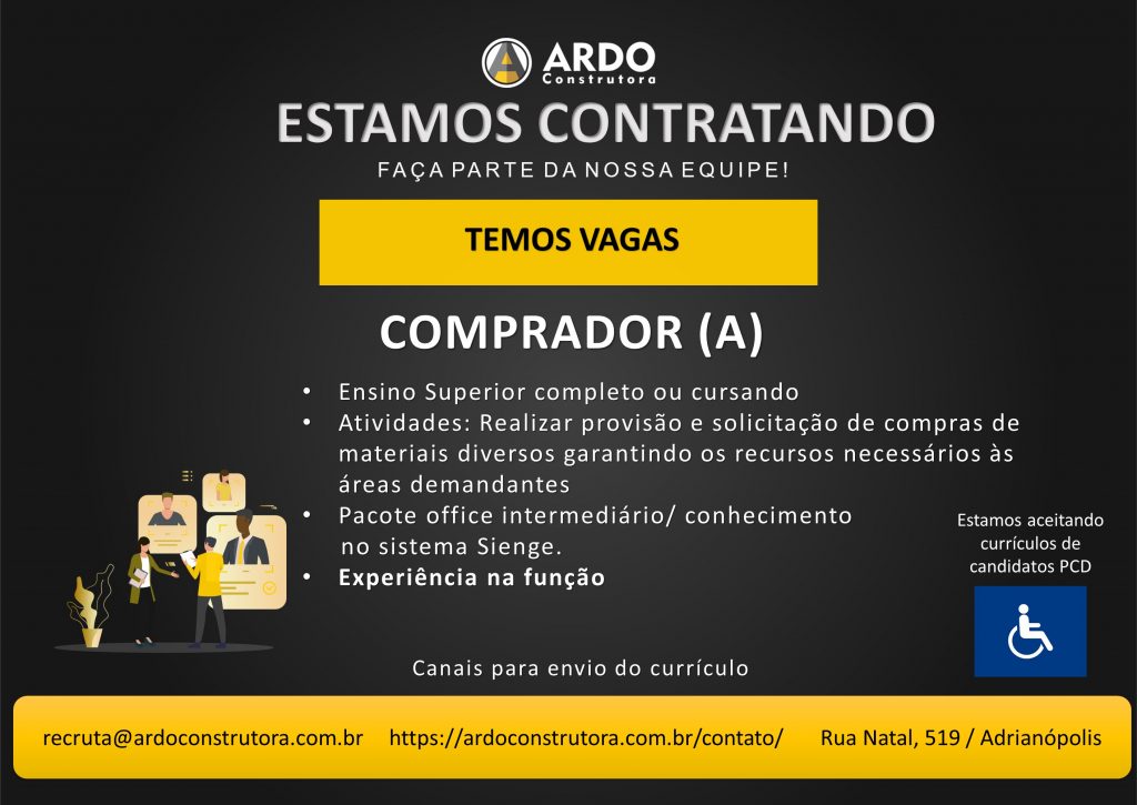 ARDO CONSTRUTORA ESTÁ RECRUTANDO NOVOS PROFISSIONAIS PARA COMPOR SEU QUADRO DE FUNCIONÁRIOS.