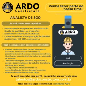 ARDO CONSTRUTORA ESTÁ RECRUTANDO NOVOS PROFISSIONAIS PARA COMPOR SEU QUADRO DE FUNCIONÁRIOS: