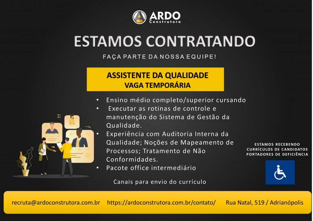 ARDO CONSTRUTORA ESTÁ RECRUTANDO NOVOS PROFISSIONAIS: