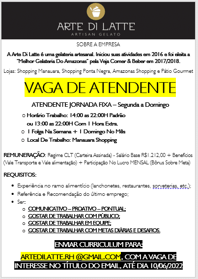 Arte Di Latte está recrutando novos profissionais: – Emprego Day – AM