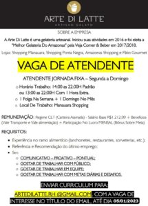 ARTE DI LATTE ESTÁ RECRUTANDO NOVOS PROFISSIONAIS CONFIRA E PARTICIPE DA SELEÇÃO: – Emprego Day – AM