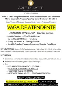 ARTE DI LATTE ESTÁ RECRUTANDO NOVOS PROFISSIONAIS PARA COMPOR SEU QUADRO DE FUNCIONÁRIOS; – Emprego Day – AM