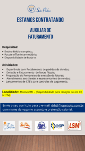As vagas anunciadas e disponibilizadas neste site são repassadas por responsabilidade da empresa ou representante do RH. Não possuímos quaisquer vínculos com a empresa ou o anunciante. Temos o único objetivo de repassar para a população o benefício de visitar gratuitamente o nosso site, com o intuito de alcançarem o tão sonhado emprego.
