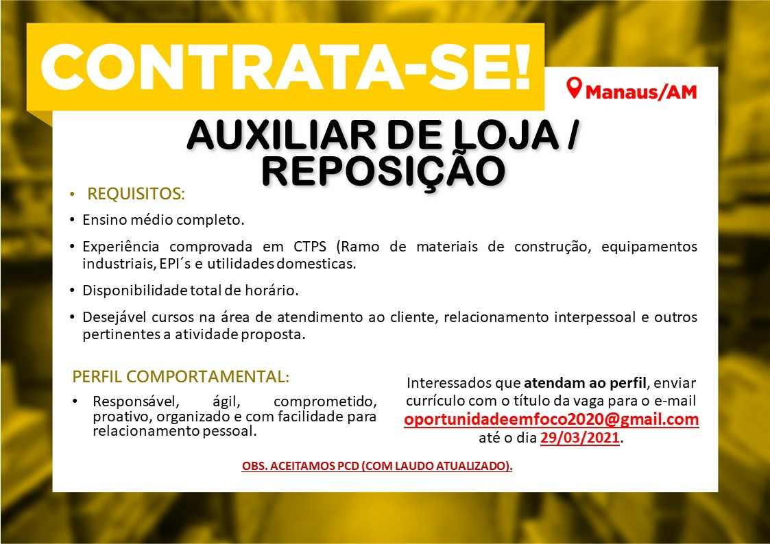 OBS: OS CURRÍCULOS QUE NÃO SE ENCAIXAREM NO PERFIL SERÃO DESCONSIDERADOS