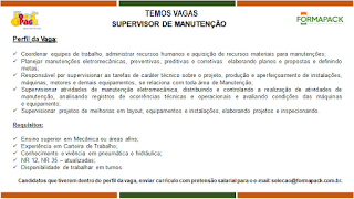 Somente com experiência na área, encaminhar currículos para o e-mail: