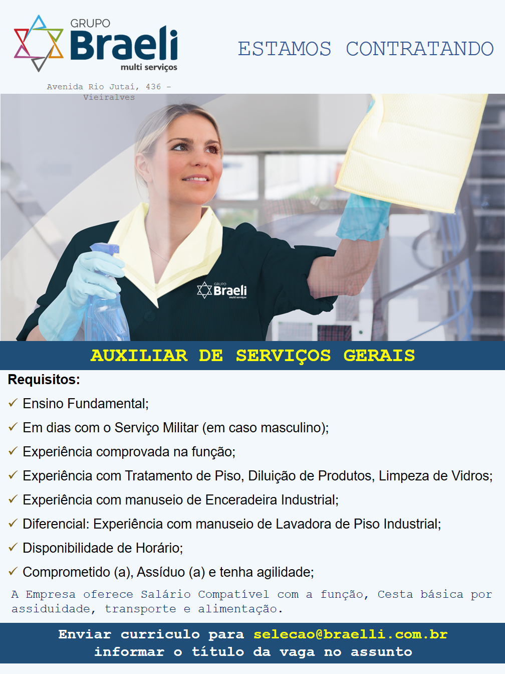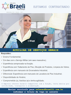 Por favor divulgar vaga, interessados encaminhar currículo para o e-mail: