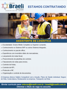 As vagas anunciadas e disponibilizadas neste site são repassadas por responsabilidade da empresa ou representante do RH. Não possuímos quaisquer vínculos com a empresa ou o anunciante. Temos o único objetivo de repassar para a população o benefício de visitar gratuitamente o nosso site, com o intuito de alcançarem o tão sonhado emprego.
