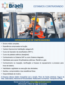 BRAELLI MULTISERVICOS ESTÁ RECRUTANDO PROFISSIONAIS PARA:
