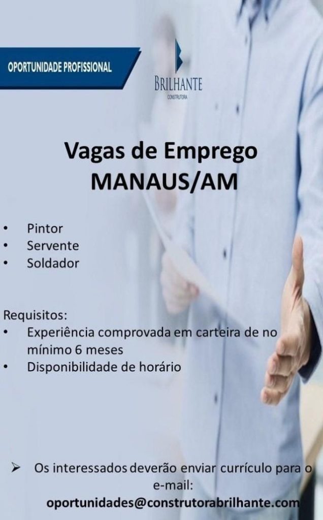 Brilhante Construtora contrata; Pintor, Servente, Soldador – Emprego Day – AM