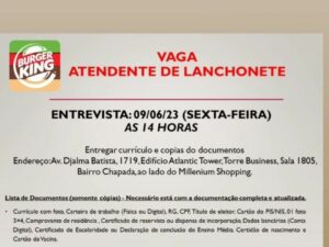 BURGER KING ESTÁ RECRUTANDO PROFISSIONAIS PARA: – Emprego Day – AM