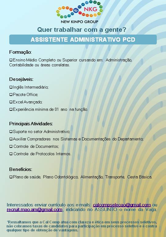 CAL COMP ESTÁ RECRUTANDO PROFISSIONAIS PARA COMPOR SEU QUADRO DE FUNCIONÁRIOS: – Emprego Day – AM