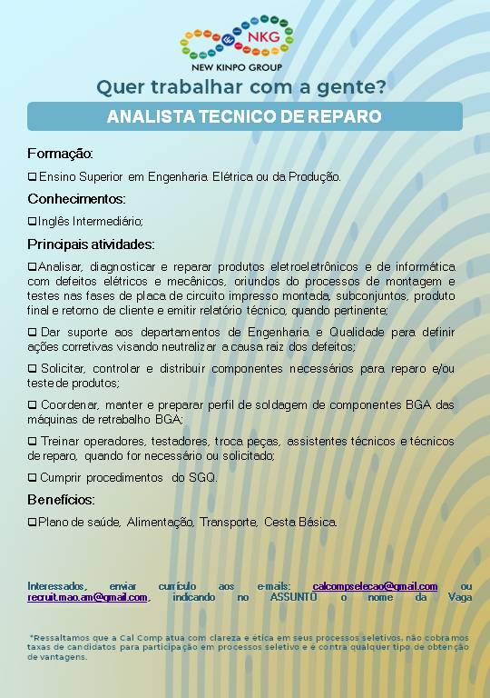 Cal Comp está recrutando profissionais para diversas áreas confira e participe das vagas!!! – Emprego Day – AM
