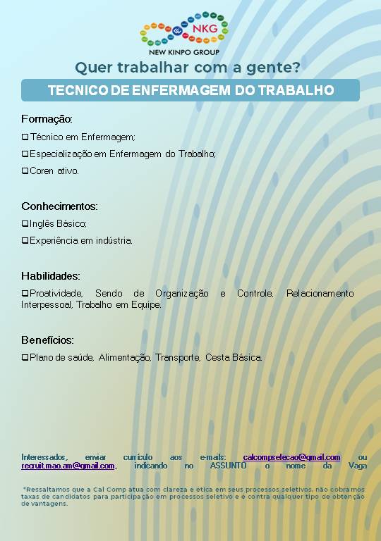 Cal Comp está recrutando profissionais para diversas áreas confira e participe das vagas!!!