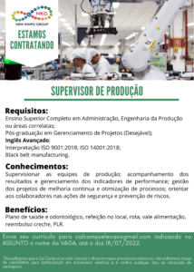 As vagas anunciadas e disponibilizadas neste site são repassadas por responsabilidade da empresa ou representante do RH. Não possuímos quaisquer vínculos com a empresa ou o anunciante. Temos o único objetivo de repassar para a população o benefício de visitar gratuitamente o nosso site, com o intuito de alcançarem o tão sonhado emprego.
