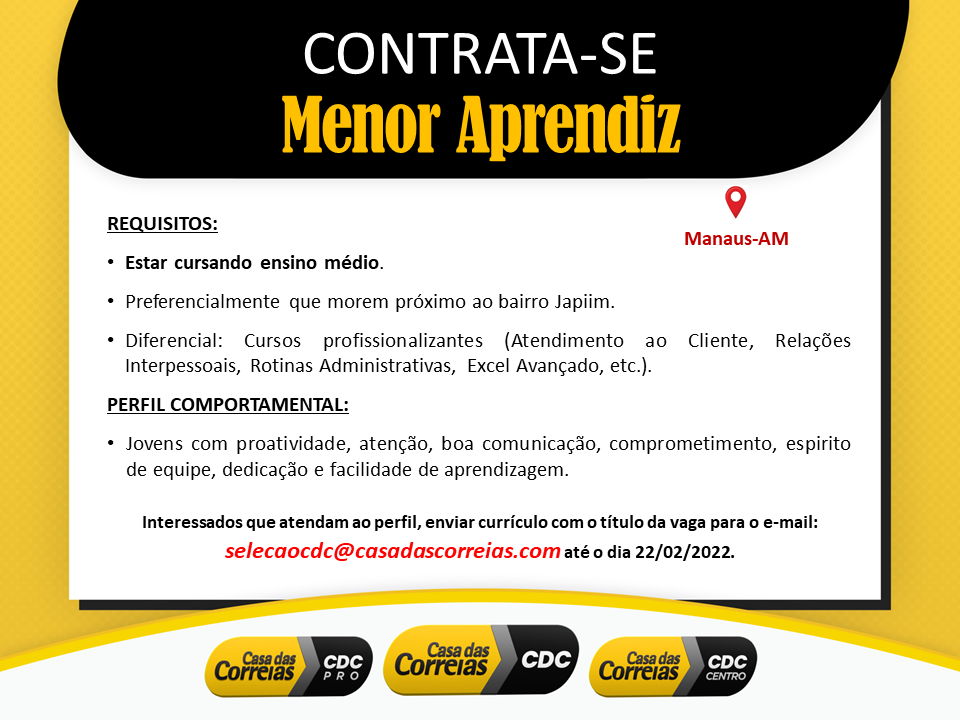 As vagas anunciadas e disponibilizadas neste site são repassadas por responsabilidade da empresa ou representante do RH. Não possuímos quaisquer vínculos com a empresa ou o anunciante. Temos o único objetivo de repassar para a população o benefício de visitar gratuitamente o nosso site, com o intuito de alcançarem o tão sonhado emprego.