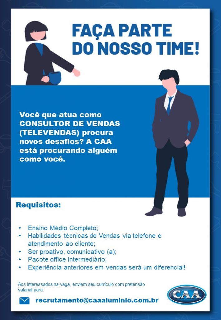 As vagas anunciadas e disponibilizadas neste site são repassadas por responsabilidade da empresa ou representante do RH. Não possuímos quaisquer vínculos com a empresa ou o anunciante. Temos o único objetivo de repassar para a população o benefício de visitar gratuitamente o nosso site, com o intuito de alcançarem o tão sonhado emprego.