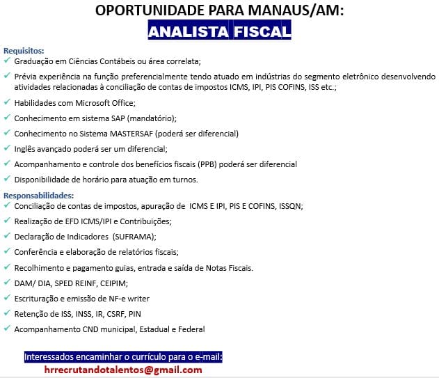 Mais informações sobre a vaga, somente por e-mail com os contratantes. Boa sorte !!!🍀
