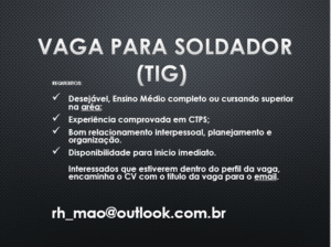 Mais informações sobre a vaga, somente por e-mail com os contratantes. Boa sorte !!!🍀