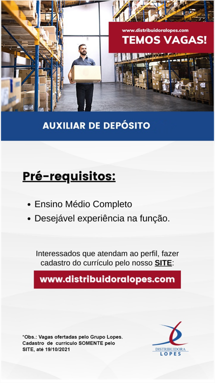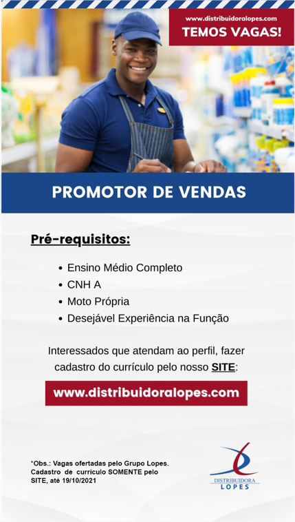 As vagas anunciadas e disponibilizadas neste site são repassadas por responsabilidade da empresa ou representante do RH. Não possuímos quaisquer vínculos com a empresa ou o anunciante. Temos o único objetivo de repassar para a população o benefício de visitar gratuitamente o nosso site, com o intuito de alcançarem o tão sonhado emprego.