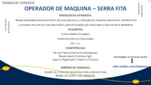 As vagas anunciadas e disponibilizadas neste site são repassadas por responsabilidade da empresa ou representante do RH. Não possuímos quaisquer vínculos com a empresa ou o anunciante. Temos o único objetivo de repassar para a população o benefício de visitar gratuitamente o nosso site, com o intuito de alcançarem o tão sonhado emprego.