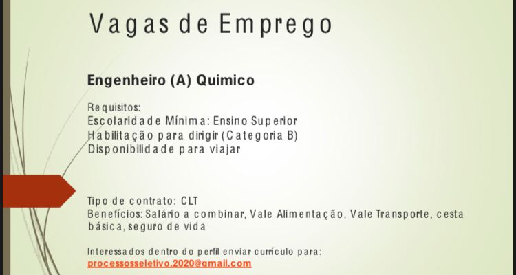 Mais informações sobre a vaga, somente por e-mail com os contratantes. Boa sorte !!!🍀