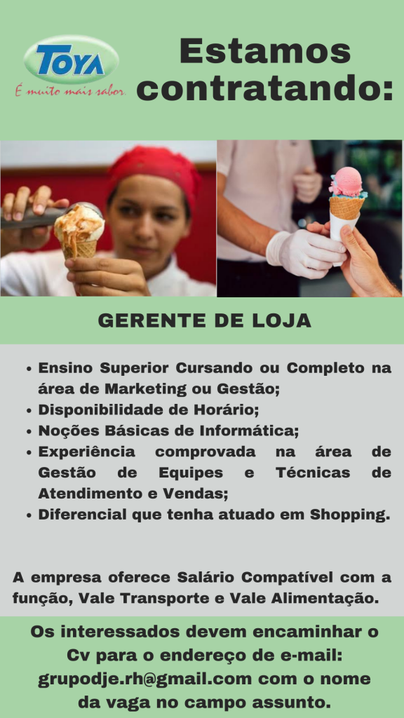 As vagas anunciadas e disponibilizadas neste site são repassadas por responsabilidade da empresa ou representante do RH. Não possuímos quaisquer vínculos com a empresa ou o anunciante. Temos o único objetivo de repassar para a população o benefício de visitar gratuitamente o nosso site, com o intuito de alcançarem o tão sonhado emprego.