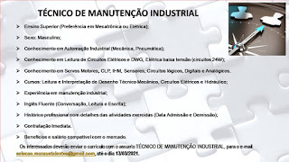Enviar Currículos com o título da vaga para o Email: