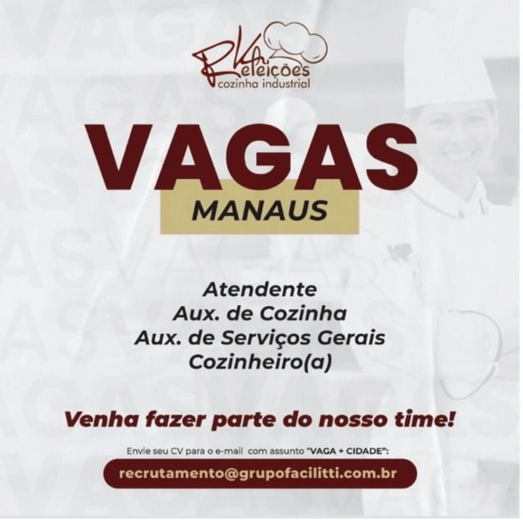 Cozinha Industrial está recrutando profissionais para compor seu quadro de funcionários: – Emprego Day – AM