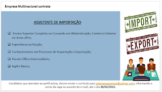 Diferencial: Facilidade no aprendizado, ter agilidade e iniciativa.
