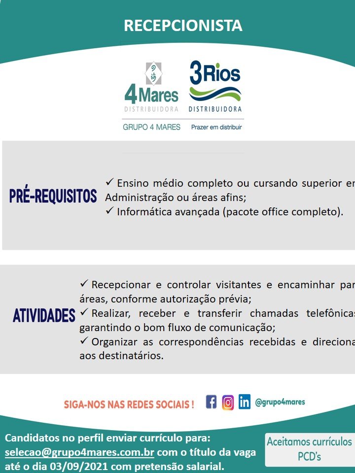 Nunca pague qualquer quantia para participar de um processo para que seja selecionado. Não compre nenhum curso, apostilas ou serviços que prometem participação na seleção ou contratação de uma vaga. E nunca insira dados bancários, cartões ou envie documentos por e-mail ou através de sites que não reconhecem. Não nos responsabilizamos por nenhum tipo de pagamento efetuado.