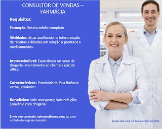 até o dia 12/02/2021, informando o nome da vaga no título do e-mail.