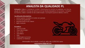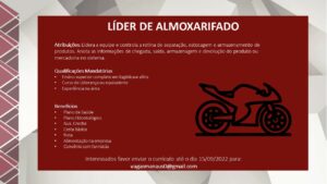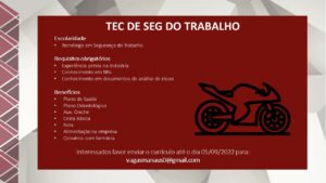 As vagas anunciadas e disponibilizadas neste site são repassadas por responsabilidade da empresa ou representante do RH. Não possuímos quaisquer vínculos com a empresa ou o anunciante. Temos o único objetivo de repassar para a população o benefício de visitar gratuitamente o nosso site, com o intuito de alcançarem o tão sonhado emprego.
