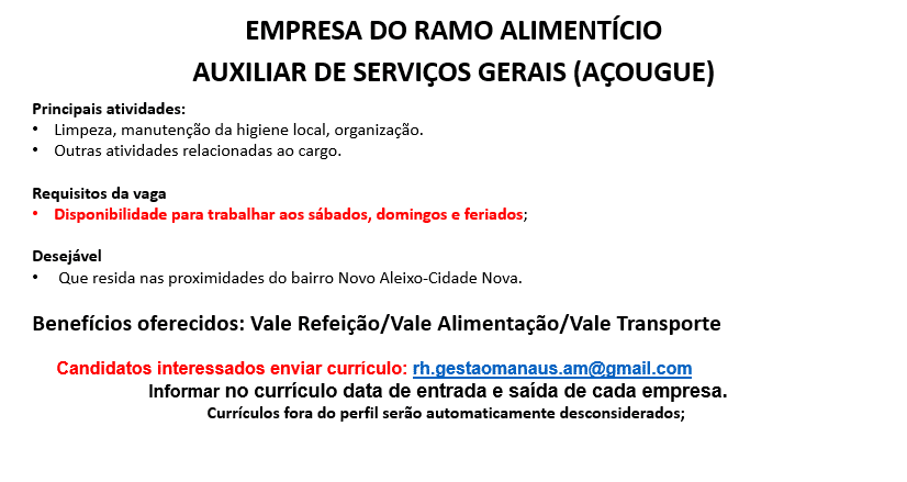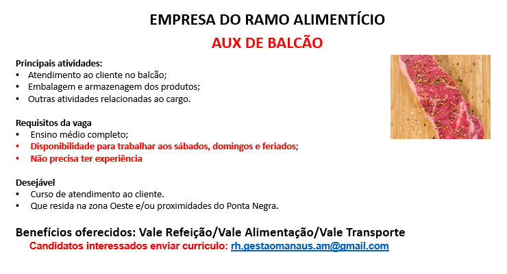 Empresa do ramo alimentício está recrutando novos profissionais: – Emprego Day – AM
