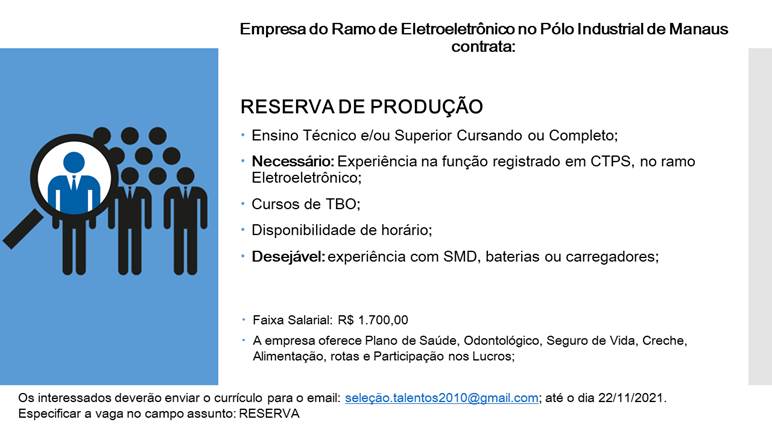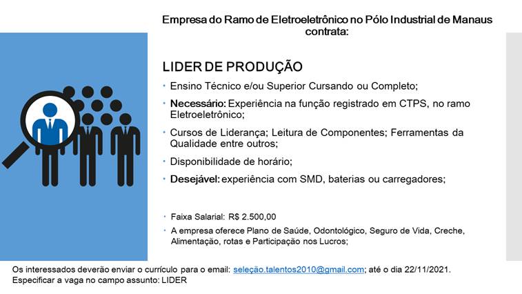 Empresa do ramo Eletroeletrônico no polo industrial está recrutando novos profissionais: – Emprego Day – AM