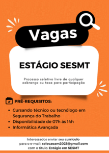 ATENÇÃO: Nunca pague nenhum valor para participar de um processo seletivo. Não compre cursos, apostilas ou serviços que prometam participação em seleção ou contratação para uma vaga. E jamais informe dados bancários, de cartão ou envie documentos por e-mail ou através de sites que não conheça.
