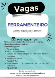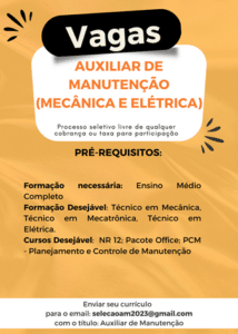 As vagas anunciadas e disponibilizadas neste site são repassadas por responsabilidade da empresa ou representante do RH. Não possuímos quaisquer vínculos com a empresa ou o anunciante. Temos o único objetivo de repassar para a população o benefício de visitar gratuitamente o nosso site, com o intuito de alcançarem o tão sonhado emprego.
