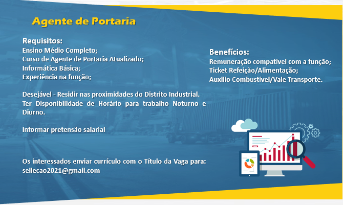 As vagas anunciadas e disponibilizadas neste site são repassadas por responsabilidade da empresa ou representante do RH. Não possuímos quaisquer vínculos com a empresa ou o anunciante. Temos o único objetivo de repassar para a população o benefício de visitar gratuitamente o nosso site, com o intuito de alcançarem o tão sonhado emprego.