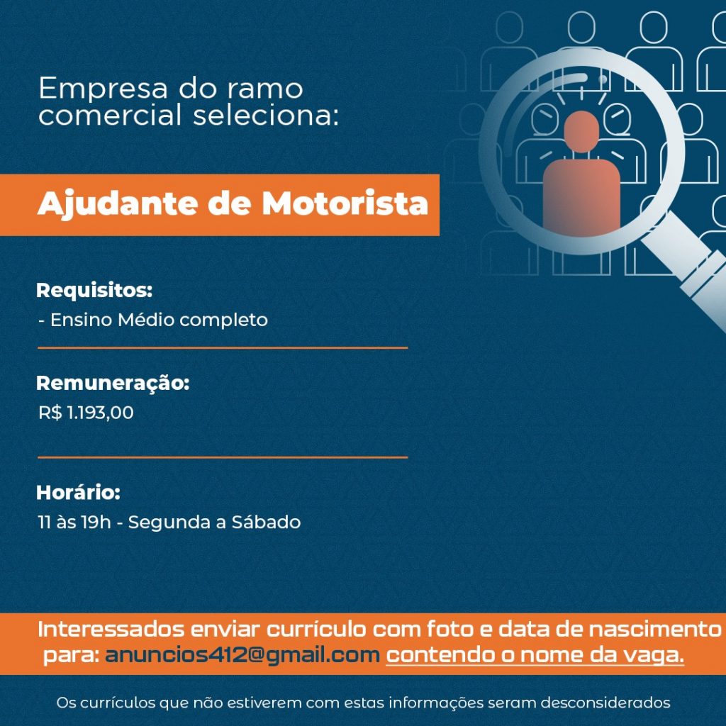 Empresa está recrutando profissionais para : Ajudante de motorista