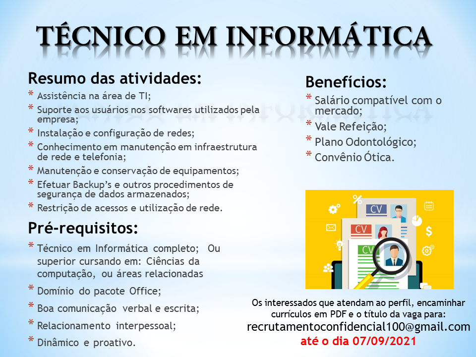 Empresa está recrutando profissionais para compor seu quadro de funcionários: Anúncios Related Posts Oportunidades de Carreira na Daimler AG (Mercedes-Benz Group): Vagas, Benefícios e Desenvolvimento Profissional Como se Candidatar às Vagas de Emprego na Daimler AG (Mercedes-Benz Group) Por Que Trabalhar na Apple: Oportunidades de Carreira, Benefícios e Cultura de Inovação anteriorVagas disponíveis para hoje!!!próximoPaula Pedrosa RH contrata os seguintes profissionais; Auxiliar de departamento pessoal, Assistente de Compras