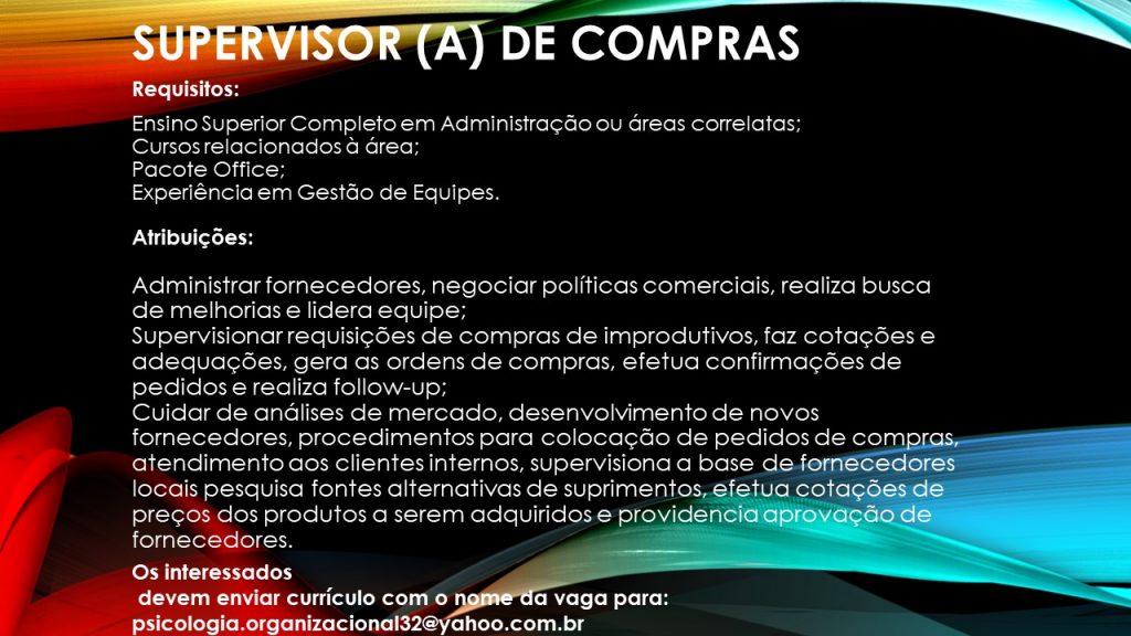 Mais informações sobre a vaga, somente por e-mail com os contratantes. Boa sorte !!!🍀