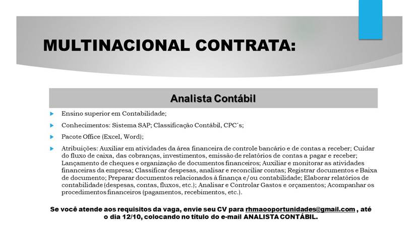 Mais informações sobre a vaga, somente por e-mail com os contratantes. Boa sorte !!!🍀